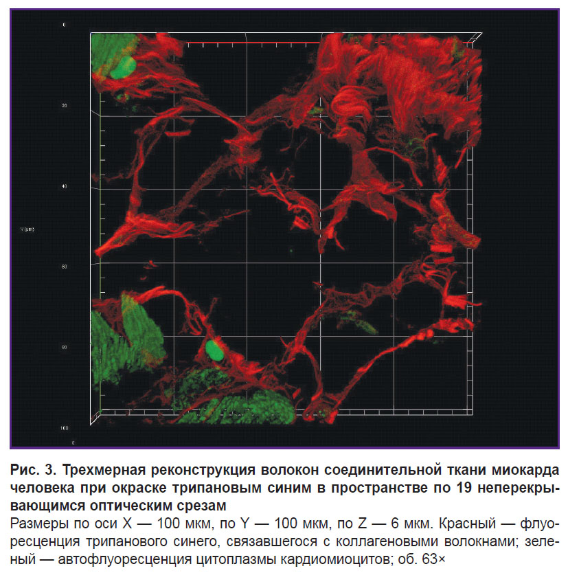 Трехмерная визуализация коллагеновых волокон миокарда человека с помощью окраски трипановым синим