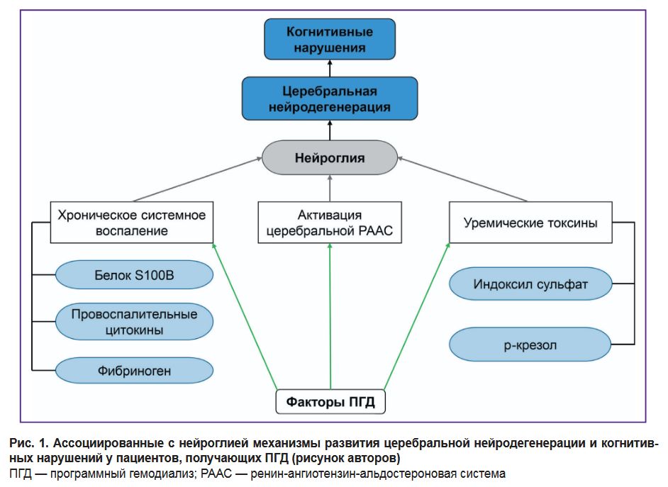 Патогенез ассоциированных с нейроглией механизмов развития церебральной нейродегенерации и когнитивных нарушений у пациентов, получающих программный гемодиализ