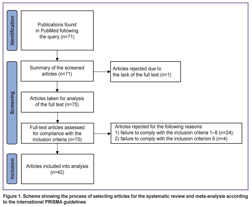The study was conducted in accordance with the international PRISMA (Preferred Reporting Items for Systematic Reviews and Meta-Analyses) guidelines for systematic reviews and meta-analyses [6].